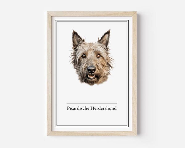 De Picardische Herdershond poster toont de robuuste en veelzijdige werkhond van de Franse velden. Perfect voor een stijlvolle en professionele ruimte. Verkrijgbaar in A5, A4, 30x40 en A2 formaten, gedrukt op 350 grams premium papier. Voeg een lijst in zwart, wit of hout toe voor een strakke afwerking