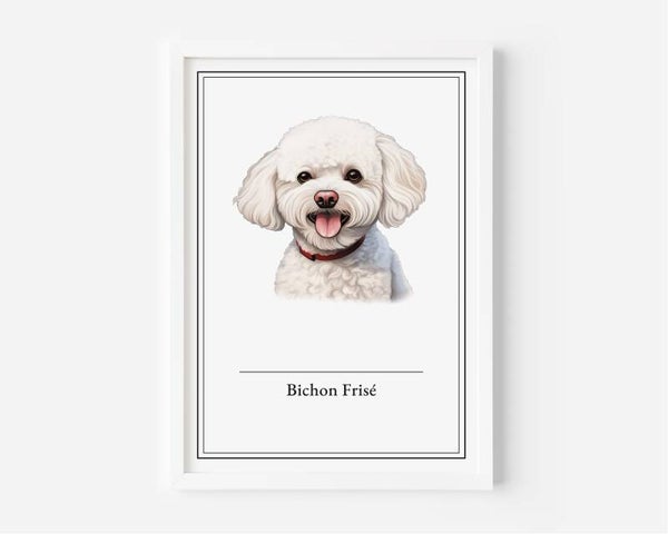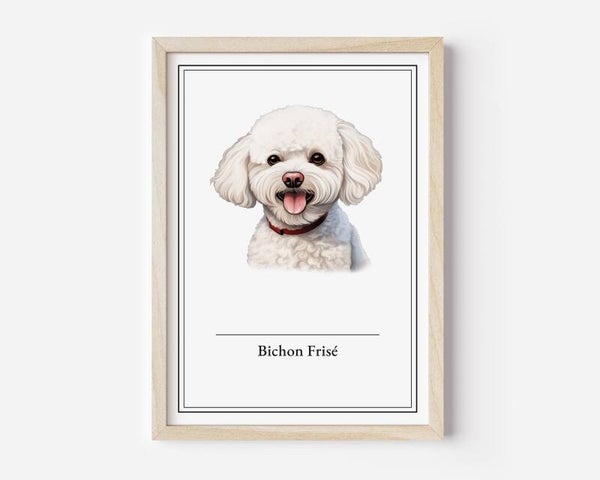 Deze Bichon poster vangt de schattigheid en speelse charme van dit lieve hondje. Met zijn zachte vacht en vrolijke uitstraling is het de perfecte aanvulling voor je interieur. Verkrijgbaar in A5, A4, 30x40 en A2 formaten, gedrukt op 350 grams premium papier. Kies voor een lijst in zwart, wit of hout voor extra flair!