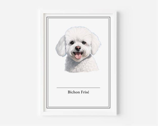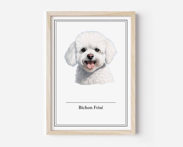 Deze Bichon poster vangt de schattigheid en speelse charme van dit lieve hondje. Met zijn zachte vacht en vrolijke uitstraling is het de perfecte aanvulling voor je interieur. Verkrijgbaar in A5, A4, 30x40 en A2 formaten, gedrukt op 350 grams premium papier. Kies voor een lijst in zwart, wit of hout voor extra flair!