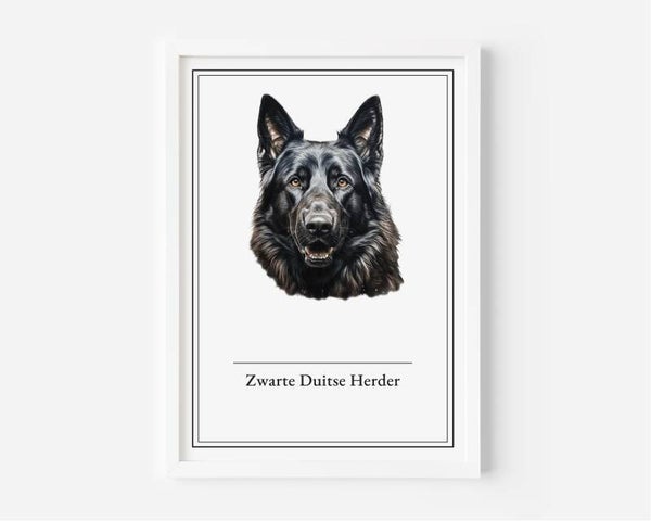 De Zwarte Duitse Herder poster brengt de waakzame en beschermende aard van deze geweldige hond tot leven. Ideaal voor een gezinshuis, waar deze trouwe viervoeter de huiskamer met trots siert. Verkrijgbaar in A5, A4, 30x40 en A2 formaten, gedrukt op stevig 350 grams papier. Voeg een lijst in zwart, wit of hout toe voor een moderne touch!