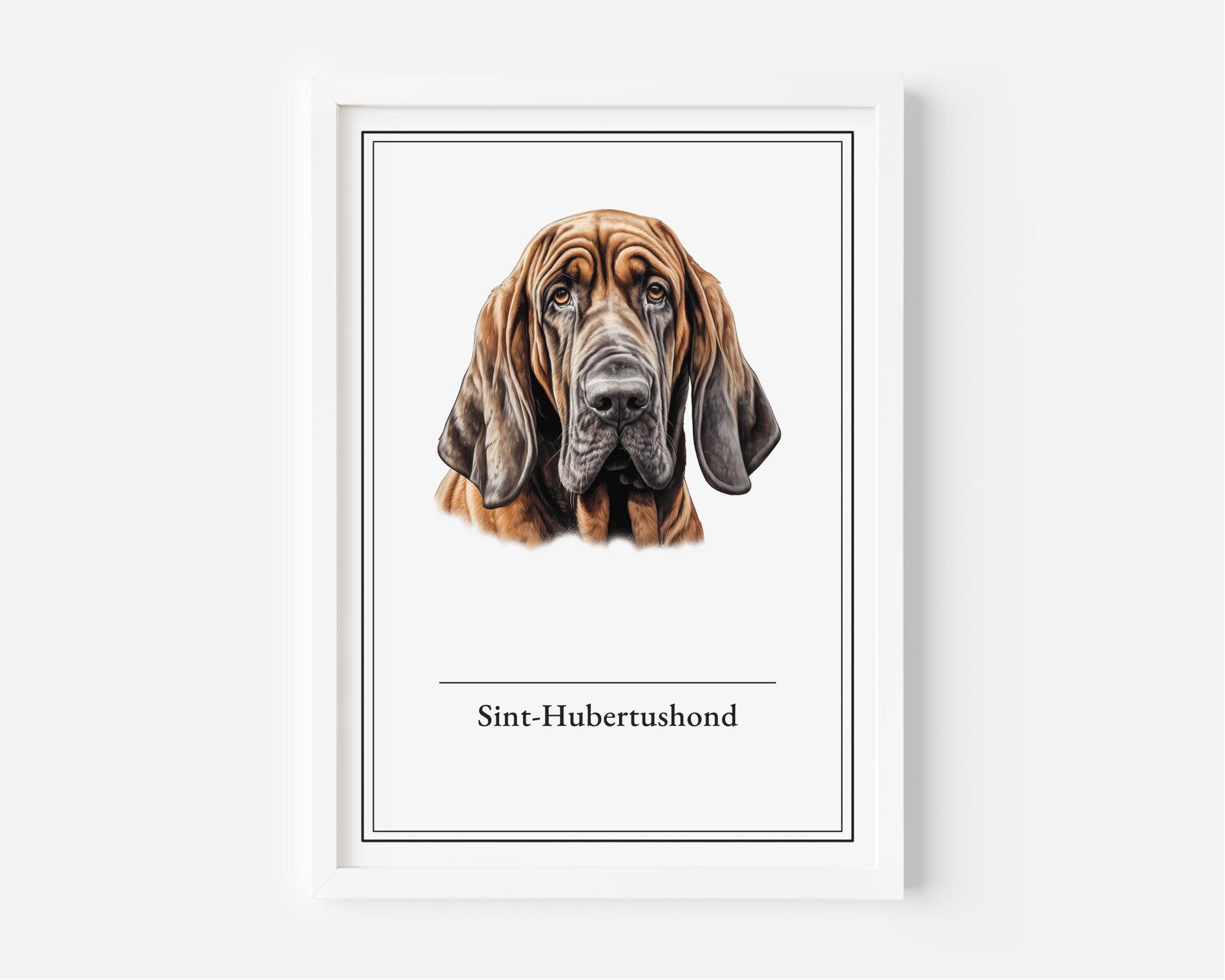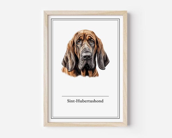 De Sint-Hubertushond poster vangt de indrukwekkende neuskracht van deze dierbare speurneus. Perfect voor een gezinsruimte, waar zijn nieuwsgierige blik altijd in de buurt is. Verkrijgbaar in A5, A4, 30x40 en A2 formaten, gedrukt op stevig 350 grams papier. Maak het compleet met een lijst in zwart, wit of hout voor een stijlvolle uitstraling!