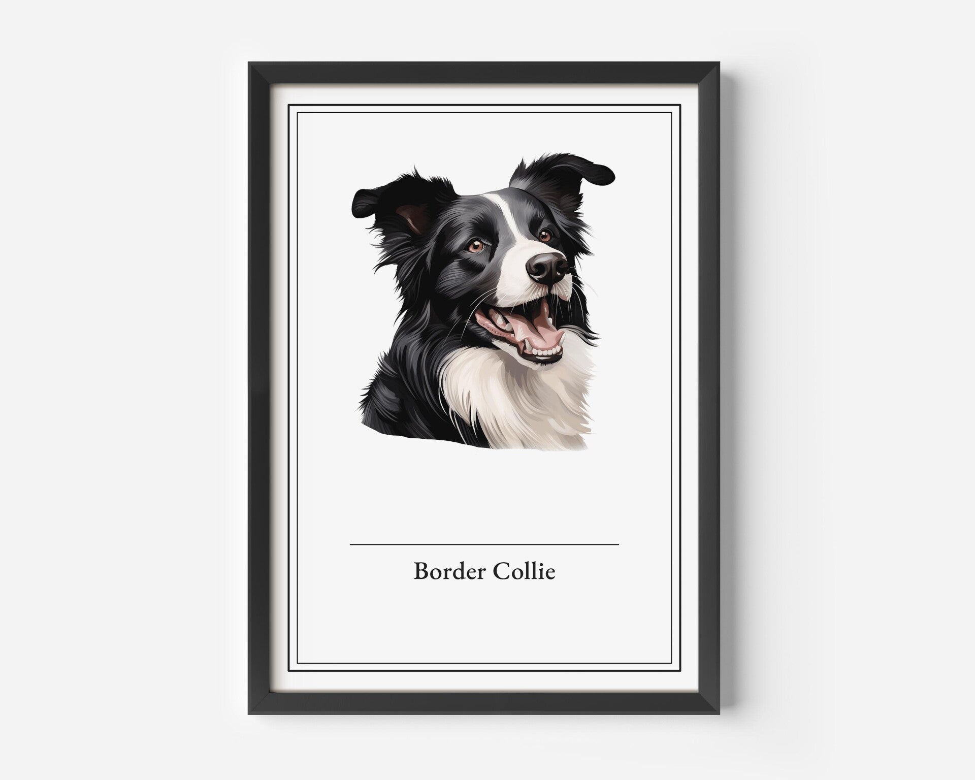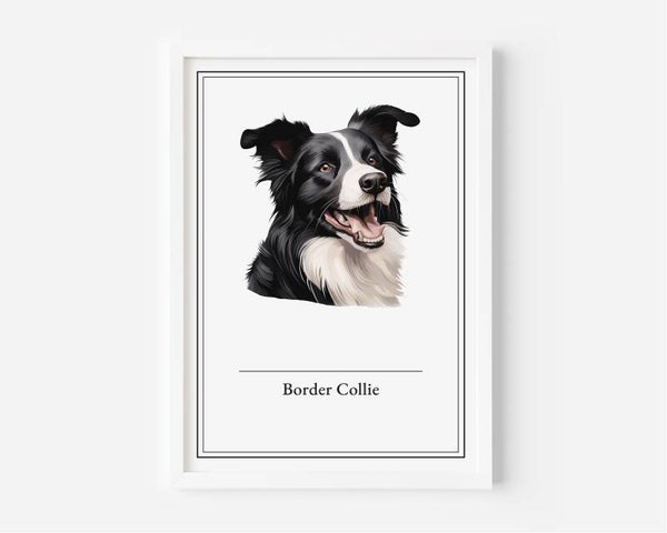 De Border Collie poster vangt de wijsheid en toewijding van dit slimme ras. Met zijn scherpe brein en onvermoeibare energie is deze hond de perfecte metgezel voor elke boerderij of gezin. Verkrijgbaar in A5, A4, 30x40 en A2 formaten, gedrukt op hoogwaardig 350 grams papier. Optioneel met een lijst in zwart, wit of hout voor een mooie afwerking.