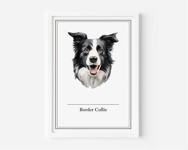 De Border Collie poster vangt de wijsheid en toewijding van dit slimme ras. Met zijn scherpe brein en onvermoeibare energie is deze hond de perfecte metgezel voor elke boerderij of gezin. Verkrijgbaar in A5, A4, 30x40 en A2 formaten, gedrukt op hoogwaardig 350 grams papier. Optioneel met een lijst in zwart, wit of hout voor een mooie afwerking.