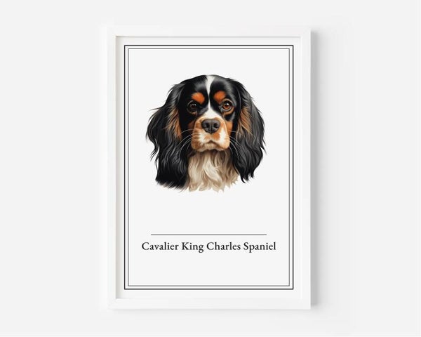 De Cavalier King Charles Spaniel poster straalt een zachte charme uit met zijn elegante verschijning. Een perfect stuk om je huis te verfraaien, vol liefde en rust. Verkrijgbaar in A5, A4, 30x40 en A2 formaten, gedrukt op 350 grams papier voor een luxe afwerking.