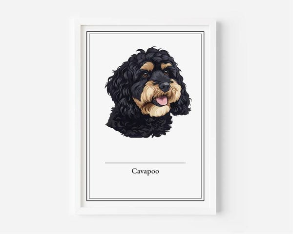 De Cavapoo poster vangt de speelse en liefdevolle uitstraling van dit schattige ras. Perfect voor een warme, huiselijke sfeer. Verkrijgbaar in A5, A4, 30x40 en A2 formaten, gedrukt op 350 grams papier voor een mooie, duurzame afdruk.
