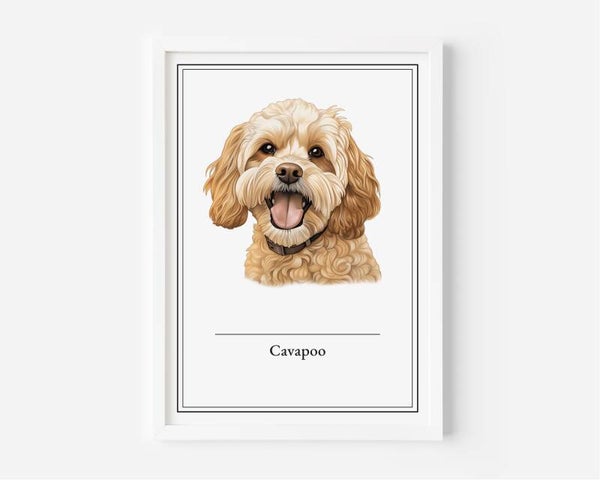 De Cavapoo poster vangt de speelse en liefdevolle uitstraling van dit schattige ras. Perfect voor een warme, huiselijke sfeer. Verkrijgbaar in A5, A4, 30x40 en A2 formaten, gedrukt op 350 grams papier voor een mooie, duurzame afdruk.