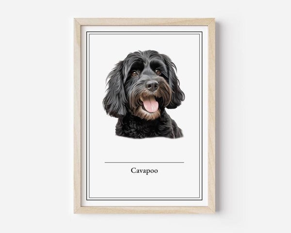 De Cavapoo poster vangt de speelse en liefdevolle uitstraling van dit schattige ras. Perfect voor een warme, huiselijke sfeer. Verkrijgbaar in A5, A4, 30x40 en A2 formaten, gedrukt op 350 grams papier voor een mooie, duurzame afdruk.