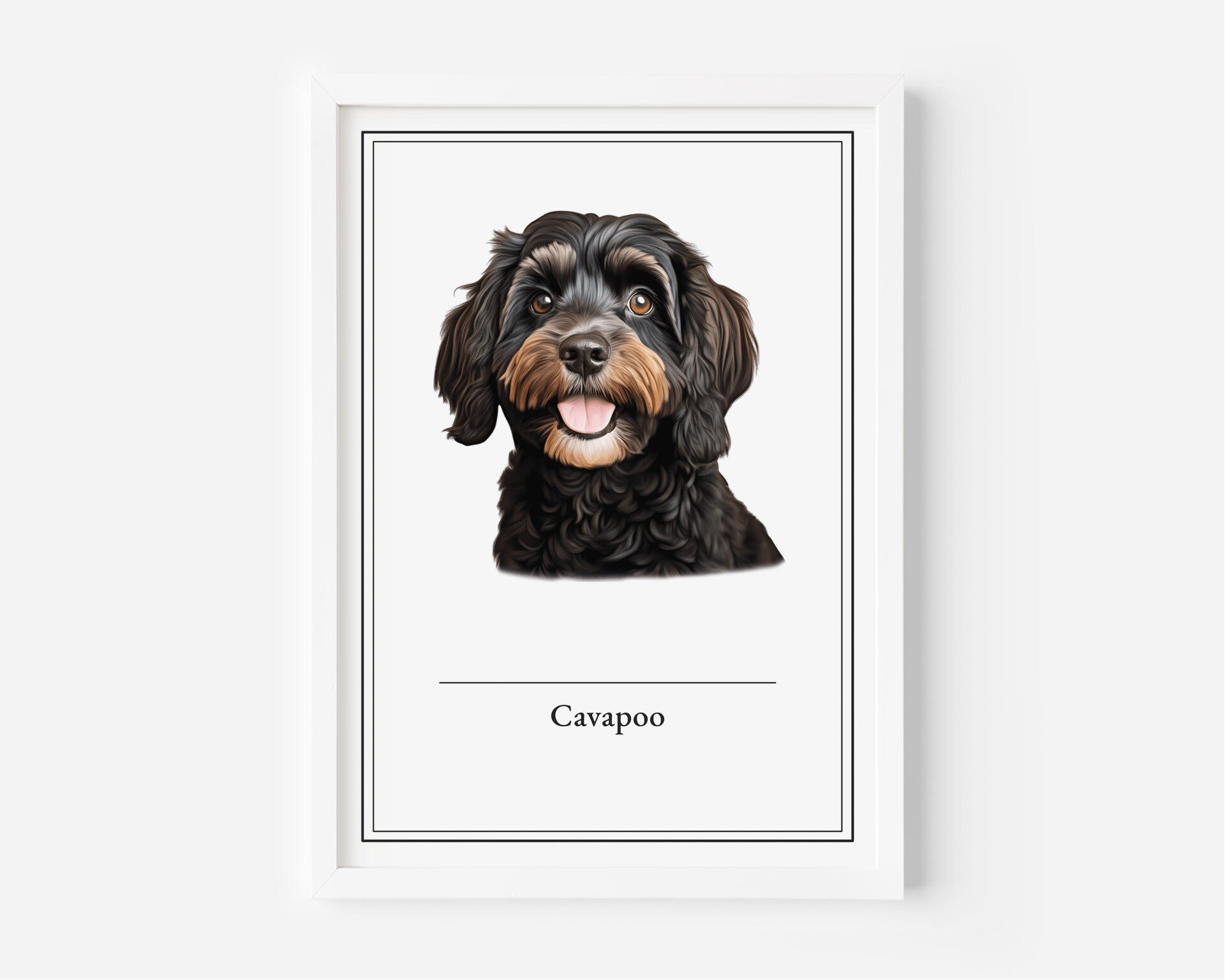 De Cavapoo poster vangt de speelse en liefdevolle uitstraling van dit schattige ras. Perfect voor een warme, huiselijke sfeer. Verkrijgbaar in A5, A4, 30x40 en A2 formaten, gedrukt op 350 grams papier voor een mooie, duurzame afdruk.