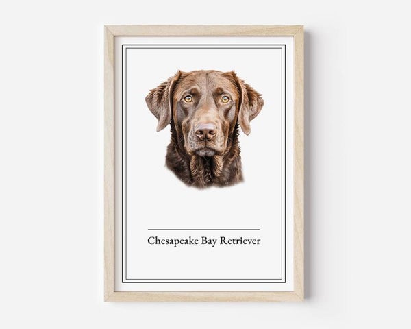 De Chesapeake Bay Retriever poster straalt kracht en charme uit, perfect voor liefhebbers van waterhonden. Dit ras, bekend om zijn energie en vastberadenheid, komt prachtig tot leven in elk formaat. Verkrijgbaar in A5, A4, 30x40 en A2 formaten op 350 grams papier.