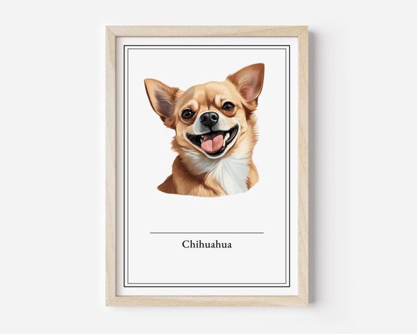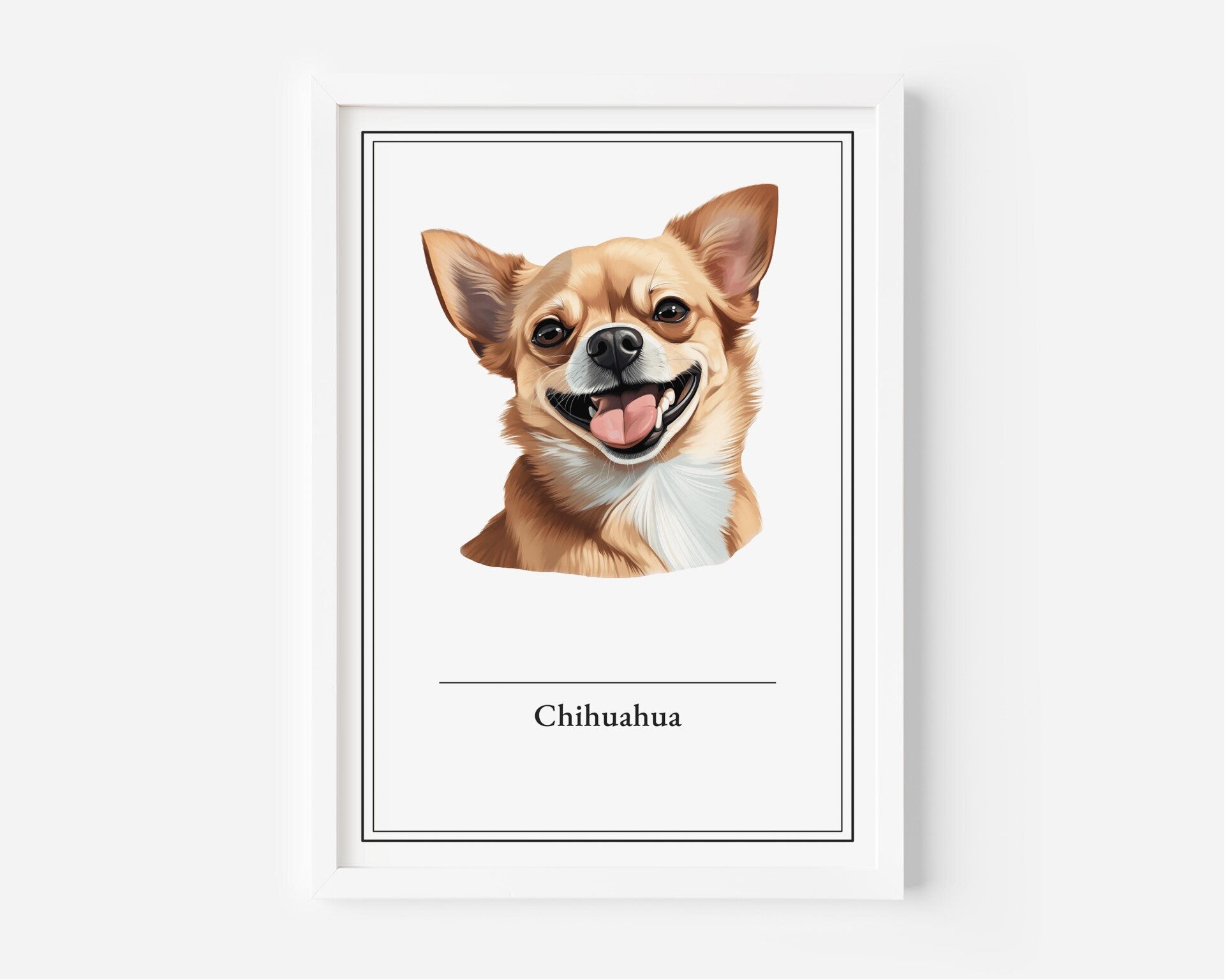 De Chihuahua poster toont het onmiskenbare karakter van dit kleine, maar krachtige ras. Klein van formaat, maar groot in persoonlijkheid, maakt deze poster een charmante toevoeging aan elke ruimte. Verkrijgbaar in A5, A4, 30x40 en A2 formaten op 350 grams papier.