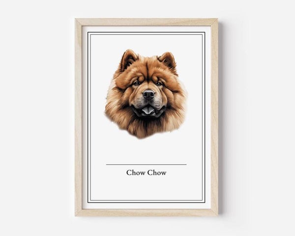 De Chow Chow poster brengt de unieke charme van deze prachtige leeuwachtige hond tot leven. Met zijn majestueuze vacht en trotse uitstraling, voegt hij een vleugje elegantie toe aan elke kamer. Verkrijgbaar in A5, A4, 30x40 en A2 formaten op 350 grams papier.