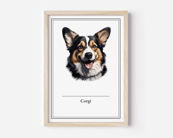 De Corgi poster brengt de vrolijke charme van deze koninklijke hond in jouw huis. Perfect voor elke ruimte, beschikbaar in A5, A4, 30x40 en A2 formaten. Geprint op stevig 350 grams papier voor een lange levensduur.