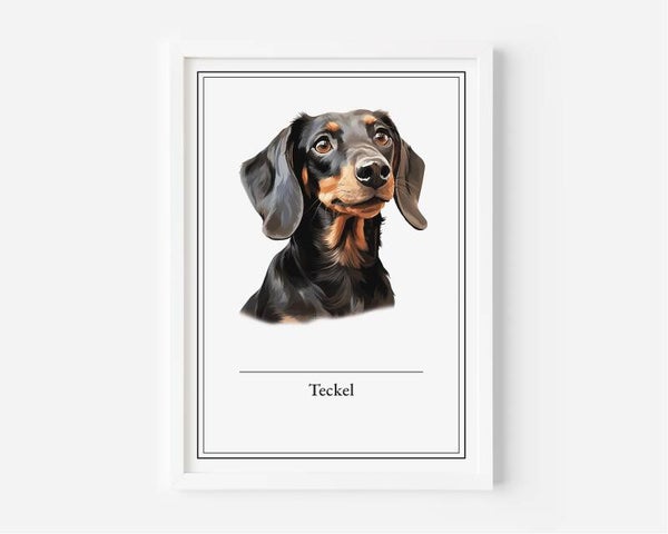 Deze Teckel poster voegt een speelse charme toe aan je huis. De korte pootjes en het grote karakter van de hond zijn perfect vastgelegd in A5, A4, 30x40 en A2 formaten. Geprint op hoogwaardig 350 grams papier.