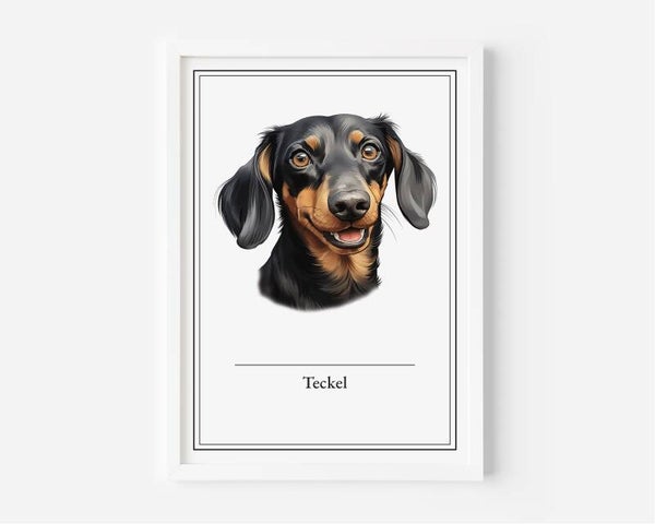 Deze Teckel poster voegt een speelse charme toe aan je huis. De korte pootjes en het grote karakter van de hond zijn perfect vastgelegd in A5, A4, 30x40 en A2 formaten. Geprint op hoogwaardig 350 grams papier.