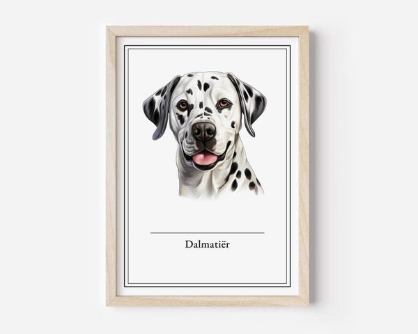 Ontmoet de avontuurlijke Dalmatiër met zijn magische vlekken! Deze poster brengt de speelse geest van deze iconische hond tot leven in jouw kamer. Verkrijgbaar in A5, A4, 30x40 en A2 formaten, geprint op stevig 350 grams papier. Perfect voor jonge hondenliefhebbers!