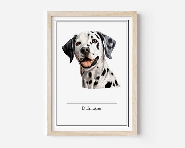 Ontmoet de avontuurlijke Dalmatiër met zijn magische vlekken! Deze poster brengt de speelse geest van deze iconische hond tot leven in jouw kamer. Verkrijgbaar in A5, A4, 30x40 en A2 formaten, geprint op stevig 350 grams papier. Perfect voor jonge hondenliefhebbers!