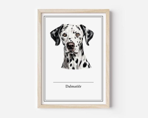 Ontmoet de avontuurlijke Dalmatiër met zijn magische vlekken! Deze poster brengt de speelse geest van deze iconische hond tot leven in jouw kamer. Verkrijgbaar in A5, A4, 30x40 en A2 formaten, geprint op stevig 350 grams papier. Perfect voor jonge hondenliefhebbers!