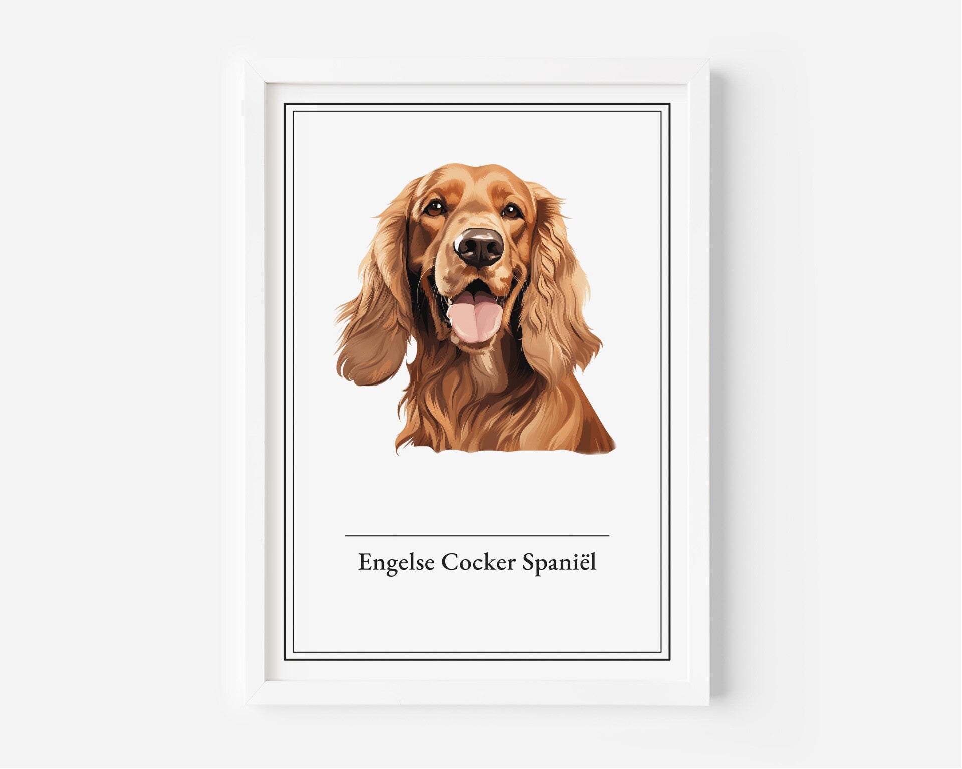 De Engelse Cocker Spaniël, met zijn ondeugende blik en charmante uitstraling, brengt de betovering van Engelse jachttradities tot leven. Deze elegante poster is een ode aan zijn speelse, maar toch verfijnde karakter. Verkrijgbaar in A5, A4, 30x40 en A2 formaten op stevig 350 grams papier.