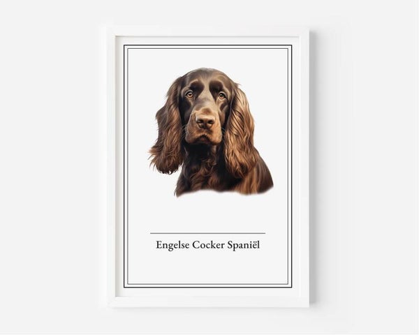 De Engelse Cocker Spaniël, met zijn ondeugende blik en charmante uitstraling, brengt de betovering van Engelse jachttradities tot leven. Deze elegante poster is een ode aan zijn speelse, maar toch verfijnde karakter. Verkrijgbaar in A5, A4, 30x40 en A2 formaten op stevig 350 grams papier.